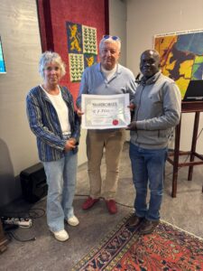 Na afloop van de lezing in het clubhuis van Oud-Castricum mocht de voorzitter van Muttathara, Tim de Heer een cheque overhandigen van 7500 euro. Ook hebben zij de toezegging gekregen van eenzelfde subsidiebedrag in 2027 en 2028. Deze subsidies zijn natuurlijk mede mogelijk gemaakt door alle mensen uit Castricum en omgeving die spullen komen inbrengen of komen winkelen bij Muttathara en we dragen hen/jullie dan ook een warm hart toe!